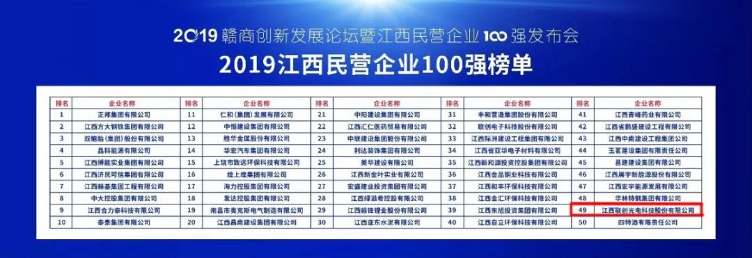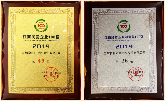 會上發(fā)布了2019江西民營企業(yè)100強(qiáng)、2019江西民營企業(yè)制造業(yè)100強(qiáng)名單,聯(lián)創(chuàng)光電均上榜,分別位列江西民營企業(yè)100強(qiáng)第49位、江西民營企業(yè)制造業(yè)100強(qiáng)第26位。聯(lián)創(chuàng)光電常務(wù)副總裁葉建青代表公司參會并領(lǐng)取獎牌。