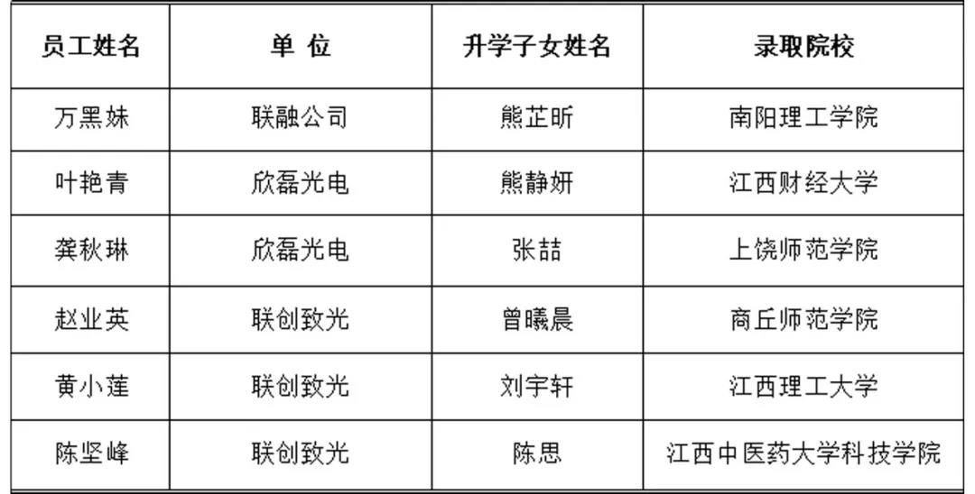 聯(lián)創(chuàng)光電2019年金秋助學(xué)獎勵名單