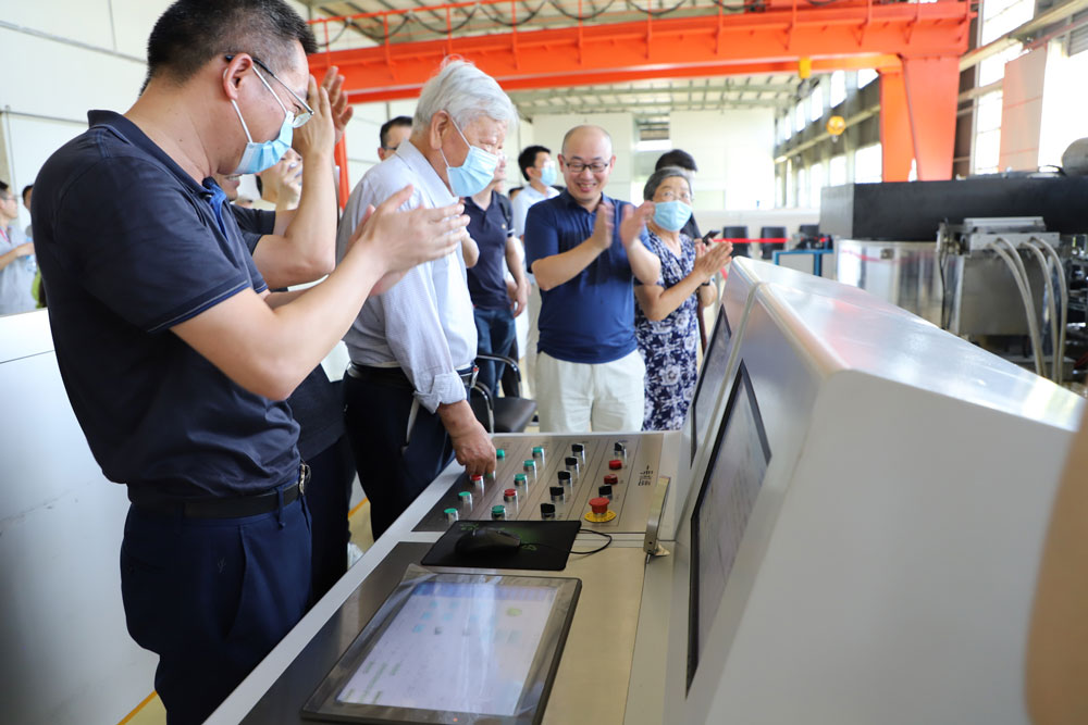 8月14日,國家最高科學(xué)技術(shù)獎(jiǎng)獲得者、中國科學(xué)院院士趙忠賢,超導(dǎo)國家重點(diǎn)實(shí)驗(yàn)室副主任金魁,中科院深圳先進(jìn)技術(shù)研究院博士生導(dǎo)師李燁一行,蒞臨集團(tuán)考察調(diào)研全球首臺(tái)兆瓦級(jí)高溫超導(dǎo)感應(yīng)加熱設(shè)備的產(chǎn)業(yè)化進(jìn)程。江西省電子集團(tuán)董事長伍銳、聯(lián)創(chuàng)光電董事長曾智斌陪同調(diào)研。在南昌45度高溫的設(shè)備生產(chǎn)車間內(nèi),趙院士為首臺(tái)套設(shè)備交付前的可靠性測試按下了啟動(dòng)鍵,該設(shè)備預(yù)計(jì)8月底實(shí)現(xiàn)交付。