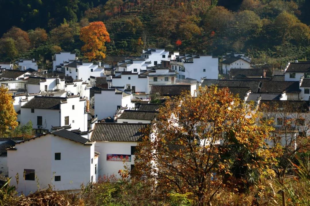 每當(dāng)日出山頭,晨曦初照,整個(gè)山間村落間,那飽經(jīng)滄桑的徽式民宿的土磚外墻與長(zhǎng)長(zhǎng)木架上,圓圓的竹匾里五彩繽紛的豐收果實(shí)排列組合,繪就出“曬秋”農(nóng)俗景觀,甚是壯觀。